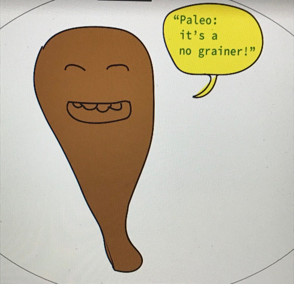 For this project I decided to create a chicken leg and insert a quote. My logo includes a chicken leg saying “ Paleo: It’s a no grainer.” I thought this quote was perfect for my logo because It’s a fun quote that goes along very well with my topic. It’s not very serious, and it shows character.